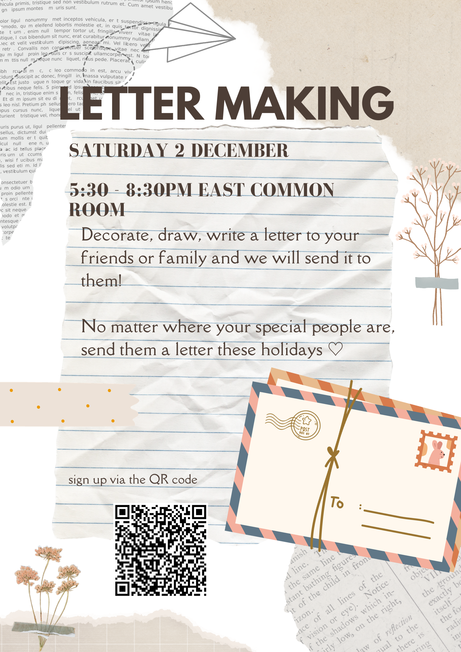 Decorate, draw, write a letter to your friends or family and we will send it to them!